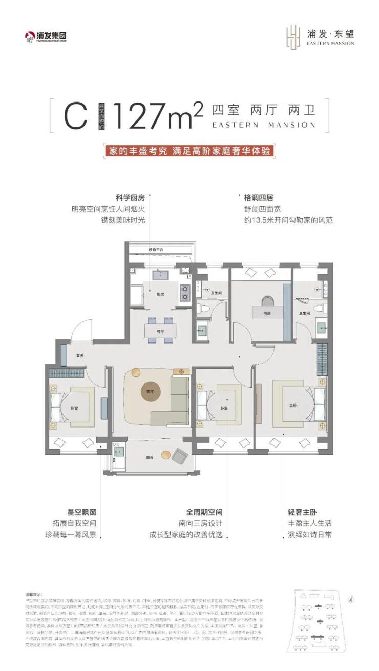 浦发上品推出建面约92-127㎡的3-4房,在所有户型设计上至少为三开间朝南,这对于任何家庭结构的购房者来说,都能享受到更好的采光、通风、视野。