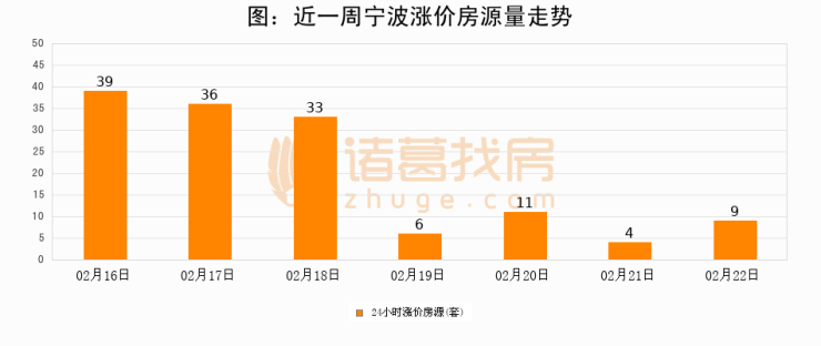 根据诸葛找房数据显示,宁波24小时涨价房源量为9套,较02月21日增加5套,环比上涨125%。与此同时,涨价房源占比小幅扩大,业主信心有所提升。