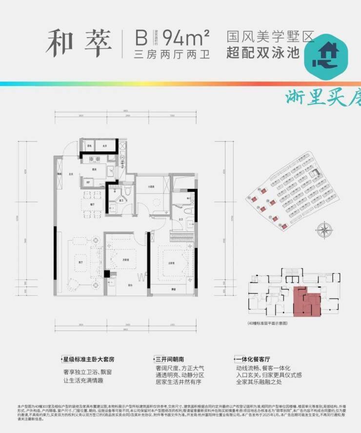 高层建面约 94㎡三房两厅两卫 :单价约 13000-15000 元 /㎡ ,总价约 123-145 万 ;三开间朝南,双阳台