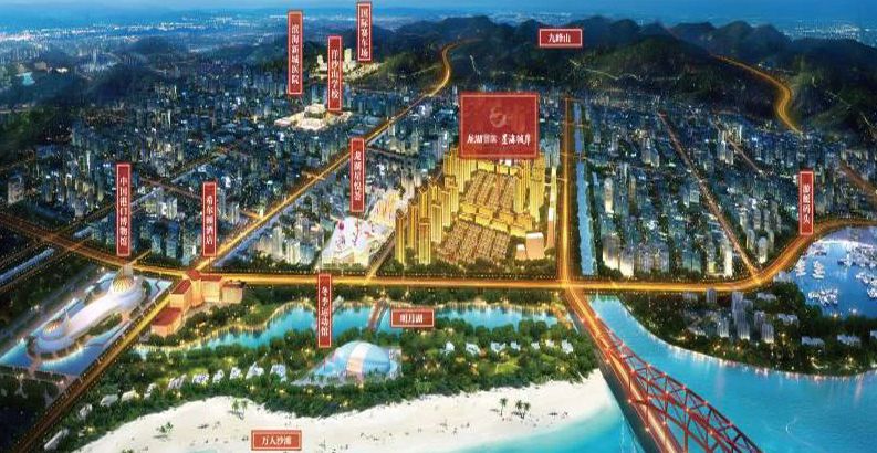 富力御湖半岛位于庄市大道与明海大道交汇处,属于镇海同心湖区块,总面积约12万方,由洋房、高层、商业和酒店四种业态组成,住宅主力建面107-165㎡。