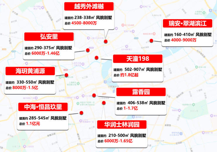 上海部分风貌别墅价格示意图