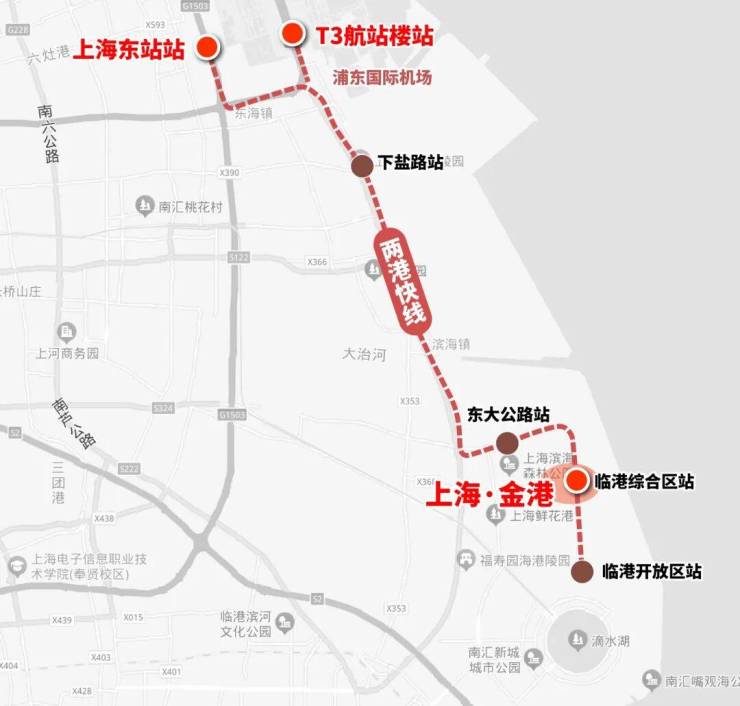 其次,上海·金港拥有两港快线(在建),预计2025年底建成。届时3站可达上海东站,通过高铁连接长三角;在上海东站还能换乘机场联络线(在建)和21号线(在建),直达张江、七宝、虹桥枢纽等重要节点。