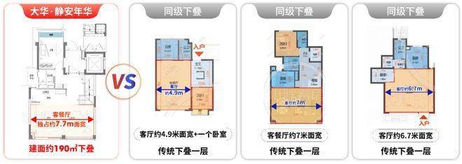 大华静安年华官方售楼处电话:400-8818-994【预约☎】而同级常规叠墅要么双面宽全给客餐厅,但面宽仅5.5-7米;要么采用南向客厅+卧室布局,客厅面宽仅约3.5米。