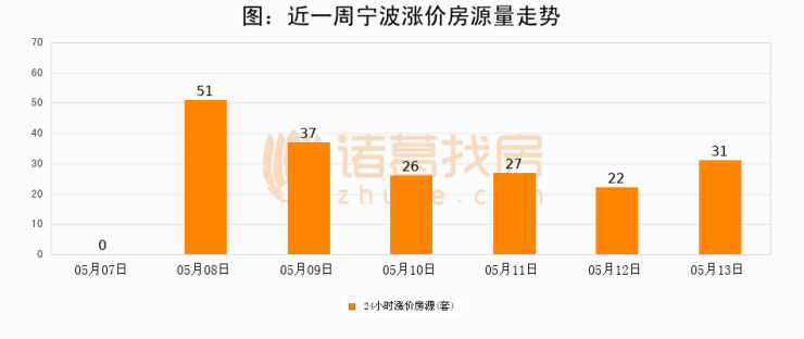 根据诸葛找房数据显示,宁波24小时涨价房源量为31套,较05月12日增加9套,环比上涨40.9%。与此同时,涨价房源占比小幅扩大,业主信心有所提升。
