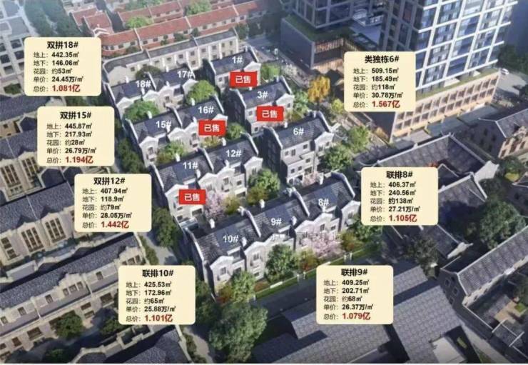 在售楼栋:15#·445.87㎡、18#·442.35㎡(双拼别墅)