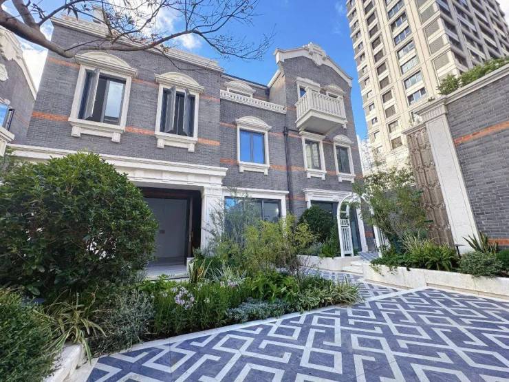 地上三层、地下两层的别墅。从建筑风格看,承扬老城厢的海派建筑风貌,重塑里、坊、庭院的形式,拉近了人与人的距离,唤起了老上海人刻在基因里的念旧,又用现代的设计手法,极简的设计理念,把外立面做的干净利落,迎合当下审美。