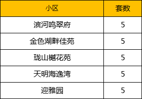 滨河鸣翠、金色湖畔佳苑、珑山樾花苑、天明海逸湾、迎雅园网签5套,并列排名前列。