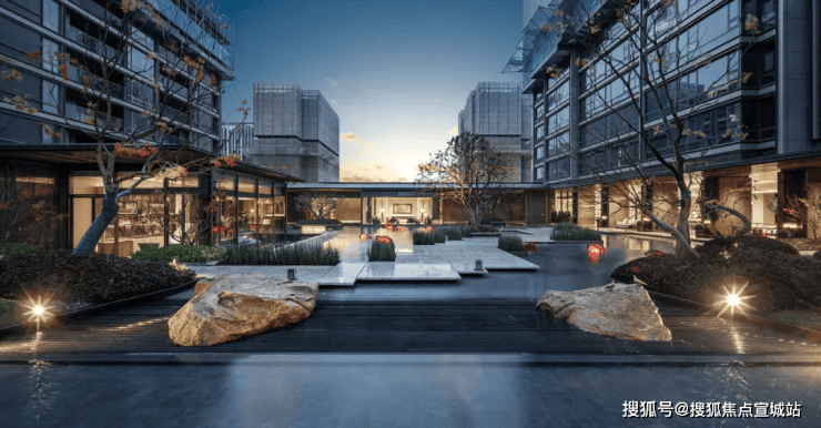 留香园的建筑立面采用大面积的玻璃、铝板、石材与金属线条结合,呈现出简洁而有力的现代感。在色彩选择上,项目以暖灰为主色调,搭配局部深色金属装饰,营造出低调而高级的视觉体验。这种色彩搭配不仅与周边环境和谐共融,更凸显出建筑的精致与品质,使留香园成为城市独特的风景,并符合其作为区域人居典范的形象。
