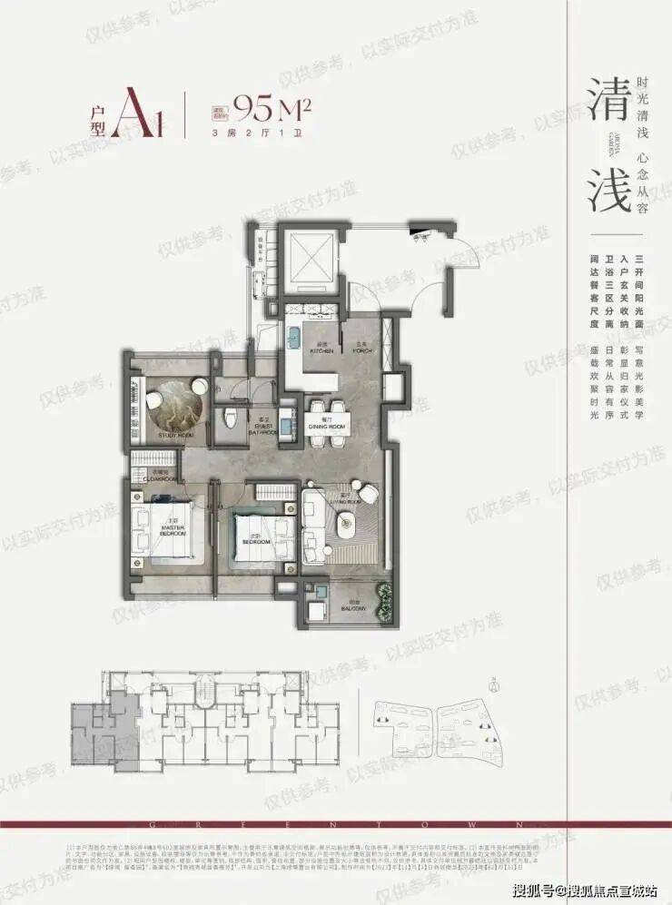 在售户型面积:主力户型为建面约105㎡三房两厅两卫,另有95㎡三房两厅一卫等户型可选