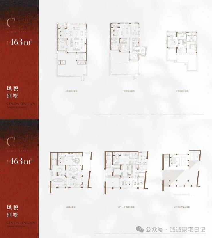 主力户型包括367㎡(5室5厅8卫)、463㎡(5室5厅10卫)、541㎡(5室5厅8卫)等
