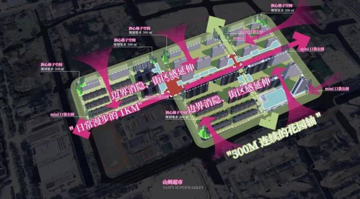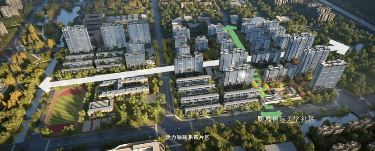 这些丰富的生活场景,则由两条景观轴线串联:一条是约300米的连续花园轴;一条是约600米的日常漫步街区。