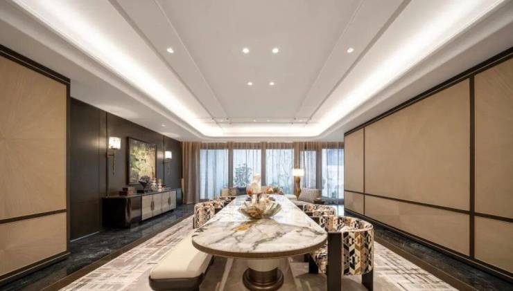 最让人震撼的是123户型客餐厅,面宽约6.6米,在拓展两个阳台后,客餐厅面积可达约40㎡,和150-160㎡客餐厅尺度相当。