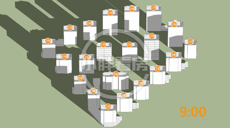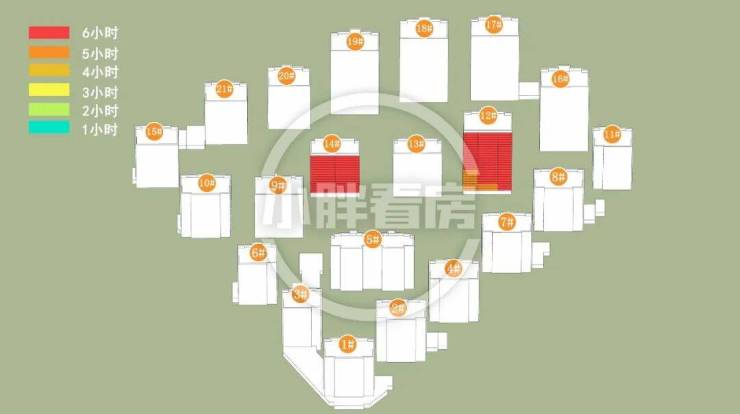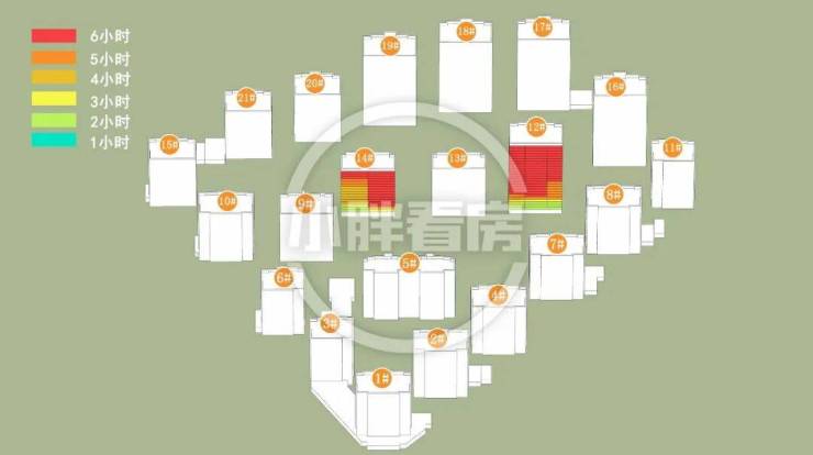 春秋季:12#14#低层受遮挡。就具体遮挡时间而言,12#主要在上午受8#遮挡。14#主要在下午受9#遮挡。
