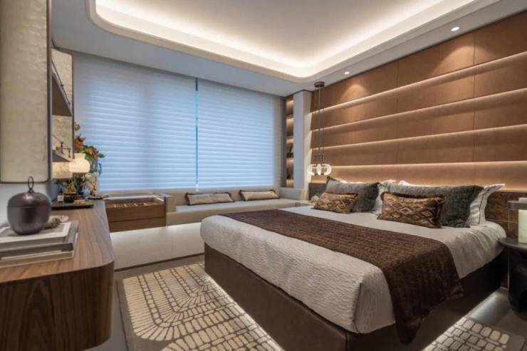 在精装修标准上,项目也是满格配置,比如中央空调,客厅岩板背景墙、墙面高档墙布;厨房老板三件套(燃气灶、油烟机、洗碗机)、可移动插座、多功能大尺寸水槽;卫生间方面,双智能马桶、暖风机、双面镜柜……