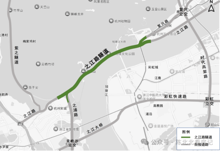 25年12月28日,5.24公里的之江路隧道通车,设计时速80公里。