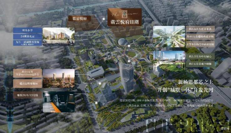 翡雲悦府·悦墅Ⅱ期作为新杨思都芯最核心的占位及最后的别墅作品,以“城墅一体”为开发理念,从单一住宅思维转变到大社区营城思维,成为衔接城市公园、商业、学校、公共配套的活力纽带,支撑整个片区居住价值升级的核心锚点。