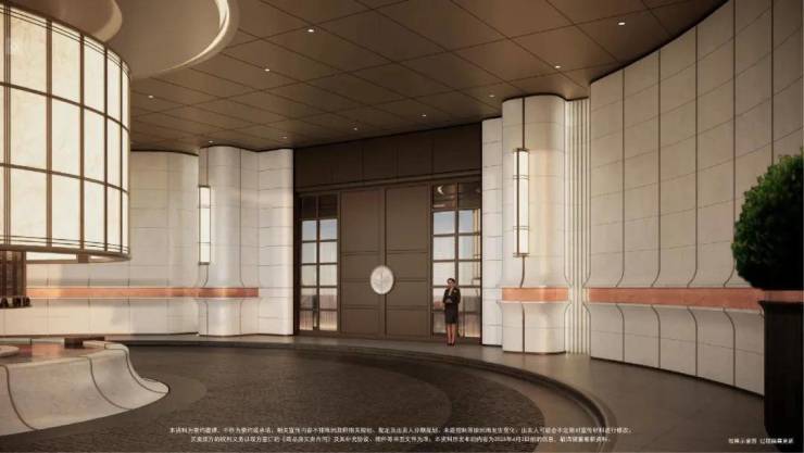 项目首层通过硬朗直线呼应柔和曲线勾勒,辅以温润石材与古铜色金属线条融合,打造东西方美学共融的艺术藏品