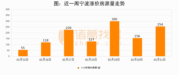 根据诸葛找房数据显示,宁波24小时涨价房源量为254套,较05月30日增加98套,环比上涨62.8%。与此同时,涨价房源占比小幅扩大,业主信心有所提升。