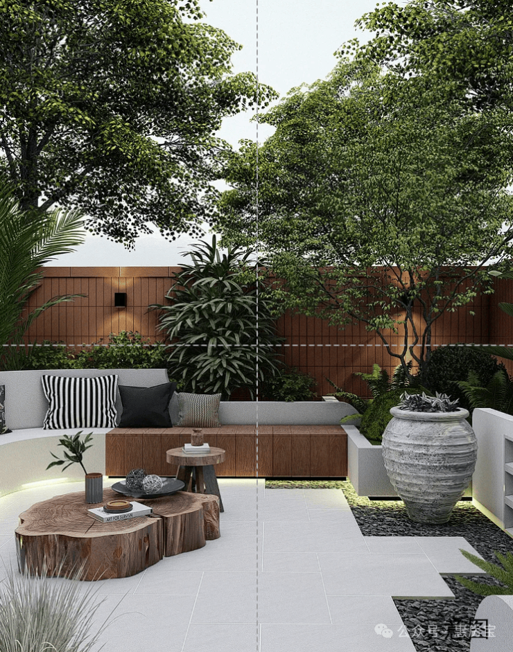 更贴心的是,花园设置约1.7米高的绿篱自然分割,后期业主可以考虑在内部加装栏杆,进一步保障私密和安全。