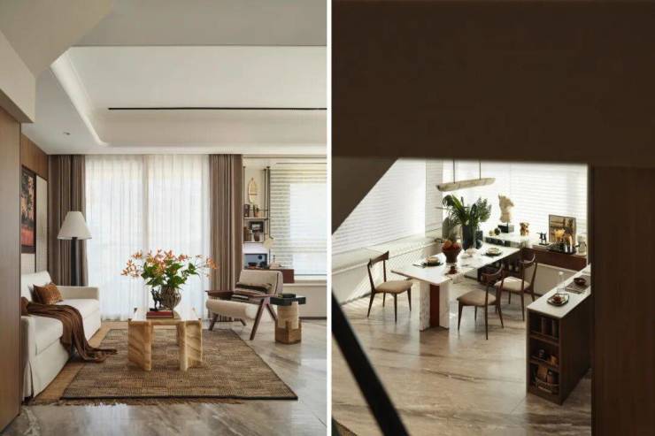 四层是会客区,这个客餐厅的面积就已经可以容纳一个大型的家庭聚会,居住体验堪比约200㎡+大平层。