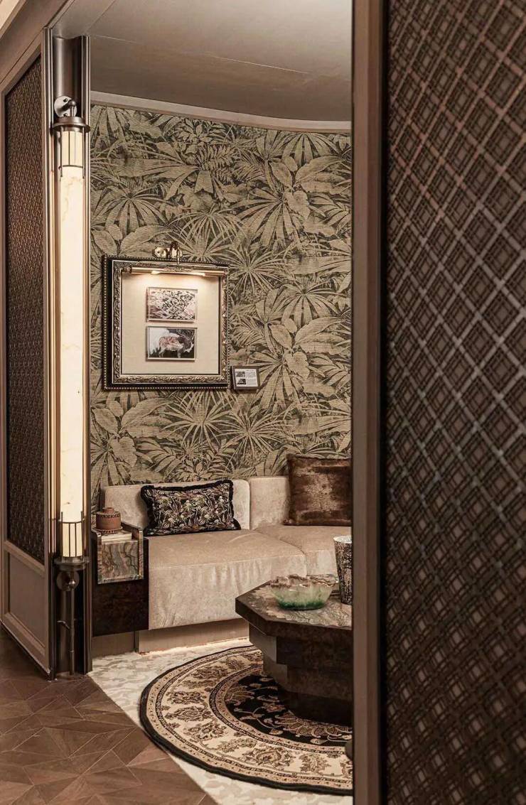 墙面,严选安第斯雪或晓山青珍贵石材,与木饰面、特色定制墙布组合设计;客厅、餐厅、卫生间等区域地面定制石材,赤足走过,温润细腻的触感。