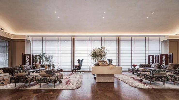 由外而内,用料十足,公区打造光石材就用了十几种,室内空间配置更是拉满。