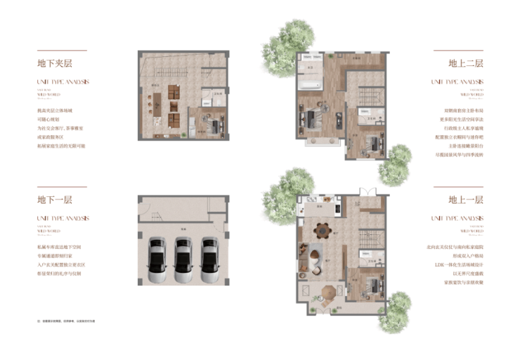 纯两层 + 超高实得率:市面罕见全两层别墅(仅 1 套三层),买两层得五层(地下隔两层 + 花园 + 露台),实得率最高200%。