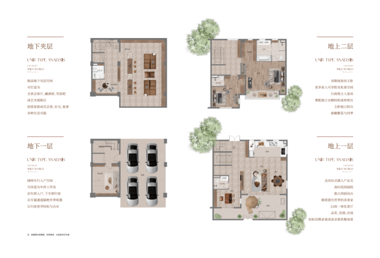地下创意空间,地面精致花园、星空露台、多功能阁楼与夹层景观。共同营造“地下藏趣,夹层会客、地面莳花、露台观星、阁楼读书”的多本生活场景。
