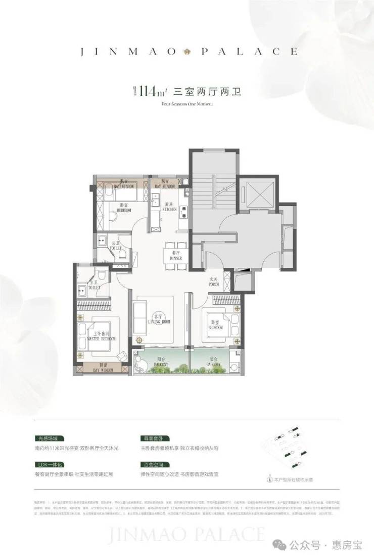 建面约114㎡3房: