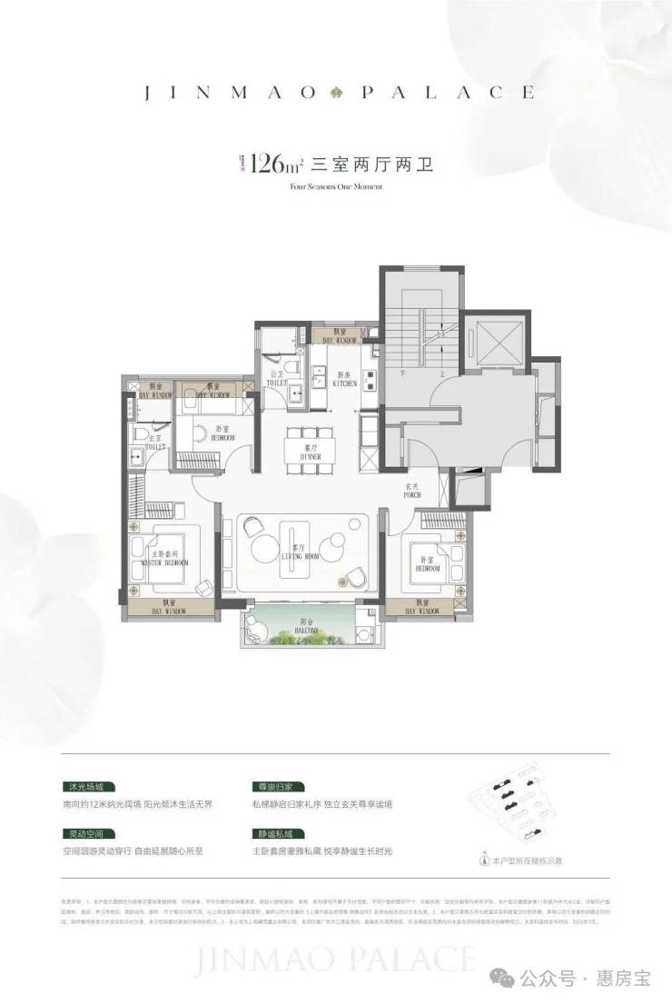 建面约126㎡3房: