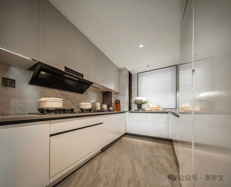 进一步提升使用率,样板间利用北卧飘窗铺就舒适榻榻米;厨房也有飘窗,增加了操作台面和收纳。