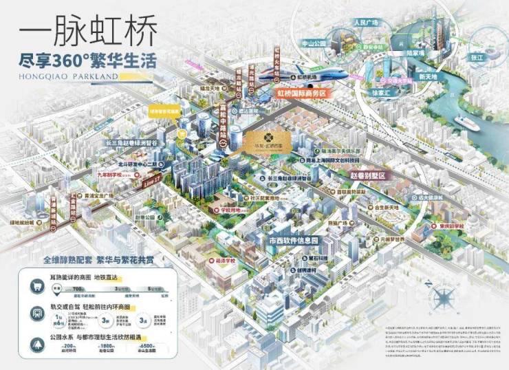 更值得一提的是,17号线不仅是通勤线,更是串联起青浦未来的“黄金发展轴”。它东起徐泾北斗产业基地,西至金泽华为研发基地,而中部核心节点,正是项目所在的赵巷市西软件信息园。这条轴线承载的,是青浦乃至整个大虹桥的科创未来。