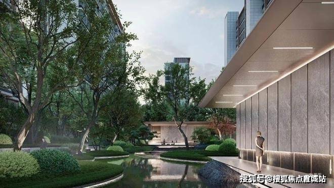 大门处爱马仕灰奢石立面、灵动中岛水景以及星辉屏风彰显业主的身份感.