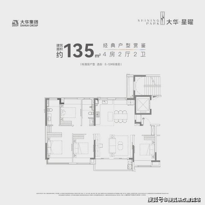 大华·星曜售楼处电话400-8618-004,均价4万/㎡,推售101-137㎡3-4房,精装标准3000元/㎡,一梯两户,户型三开间朝南,得房率高,私密性强。