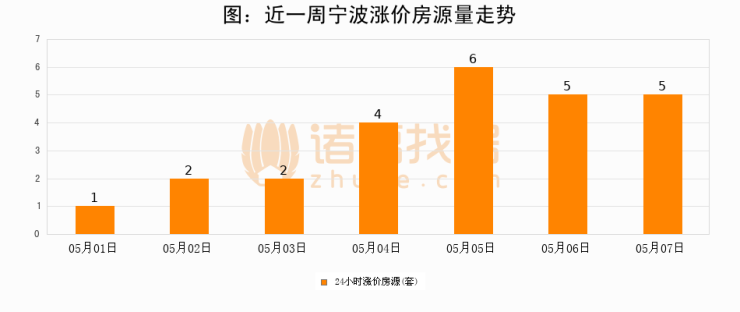 根据诸葛找房数据显示,宁波24小时涨价房源量为5套,较05月06日持平。