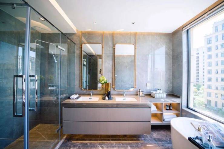 通燃气、精装交付:生活便利性远超同类商办产品,装修标准含嘉格纳厨电、唯宝卫浴等一线品牌