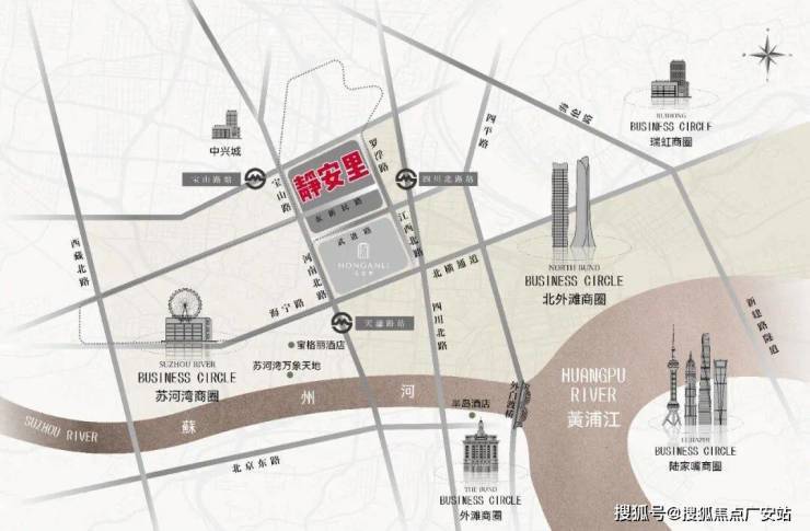 区位地址:静安区北站街道武进路588号(武进路与宝山路交汇处),内环内苏河湾核心,南接弘安里、东靠今潮8弄、西临苏河湾万象天地