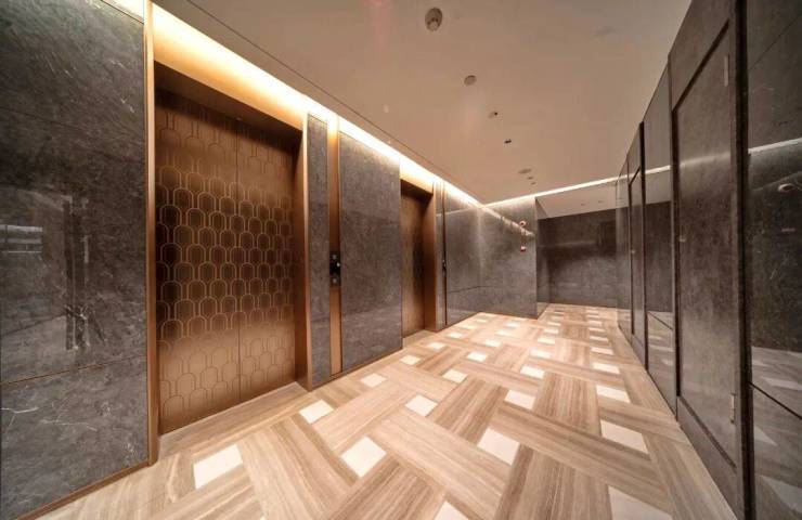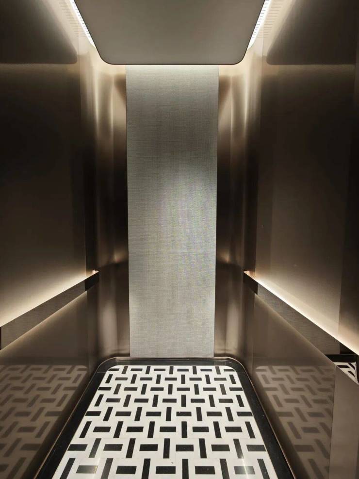 更值得一提的是,项目打造的 电梯轿厢都比一般的电梯高空间感打造上相当出彩 ,搭配 无主灯悬浮吊顶与金属墙面 设计,海派归家仪式感拉满!