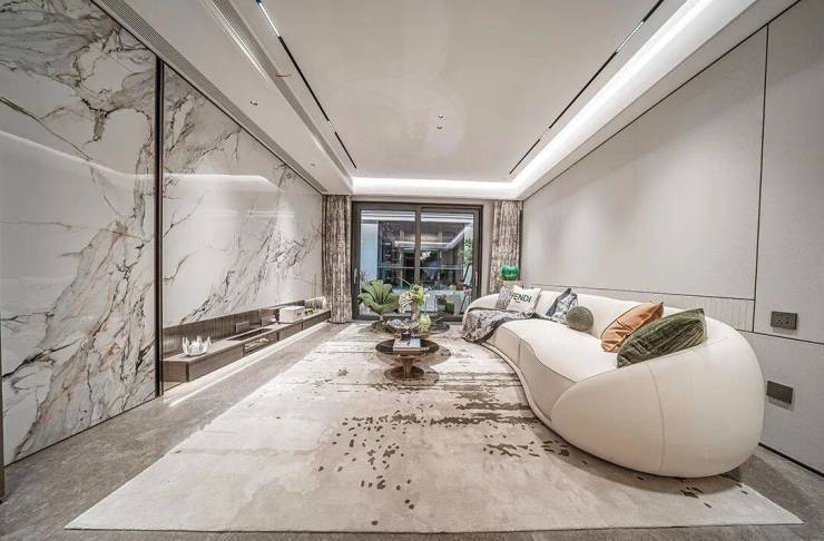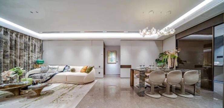样板间实景尺度奢阔,面宽约4.2米的客厅采光效果好的同时也是相当气派~