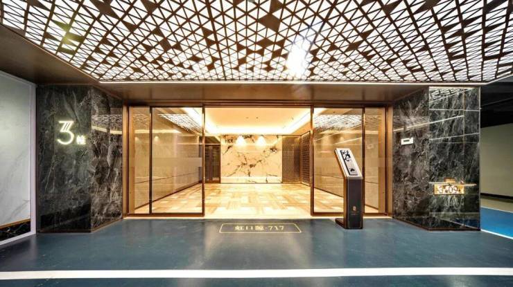 除此之外,项目还有 地下车库空间实景呈现 ,未来业主 地库入户大堂、电梯厅 等都高质量打造呈现,品质感十足! 星空顶 设计感相当惊艳, 地下入户大堂及电梯厅的木纹拼花地板 足见其设计团队的超高审美!