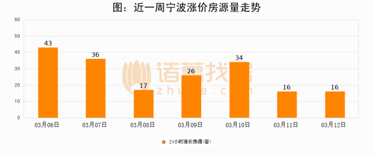 根据诸葛找房数据显示,宁波24小时涨价房源量为16套,较03月11日持平。