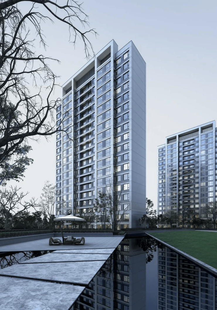 项目总体约16万方,共885套住宅,分东西两地块开发,容积率2.3,绿化率约35%,是整个区域稀缺的精装小高层,外立面一二层局部设置石材及铝板线条,大面为真石漆涂料,整体建筑高端大气,线条挺拔,相当符合现代年轻人审美。