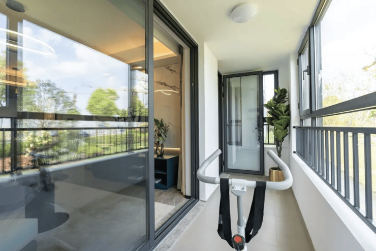 最重要的是,建面约105㎡的户型,设计了1.5阳台,不仅是阳台空间的扩大。它的精髓,在于打通了次卧与阳台的家务动线。