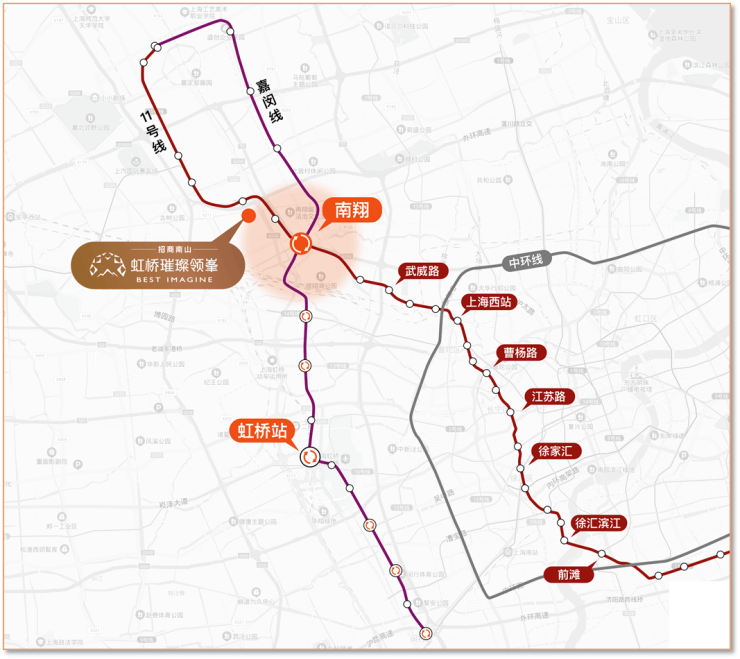 临近在建嘉闵线,4站直达虹桥枢纽,未来可换乘机场线速抵浦东国际机场