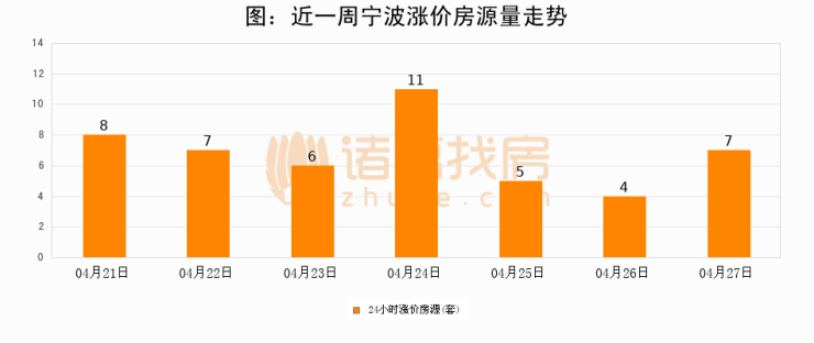 根据诸葛找房数据显示,宁波24小时涨价房源量为7套,较04月26日增加3套,环比上涨75%。与此同时,涨价房源占比小幅扩大,业主信心有所提升。