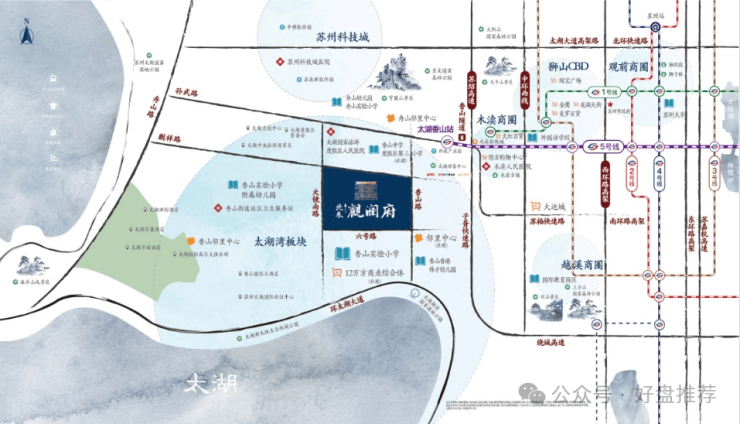 区域内高新产业、5A景区、太湖中心mall(现已开业)大型商业、品质教育集萃,城市资源要素承载之地,地脉价值不彰自显。