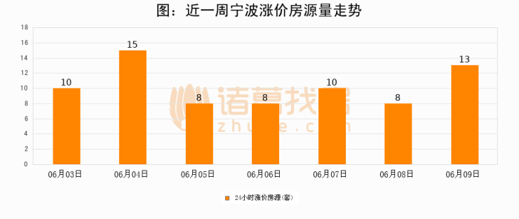 根据诸葛找房数据显示,宁波24小时涨价房源量为13套,较06月08日增加5套,环比上涨62.5%。与此同时,涨价房源占比小幅扩大,业主信心有所提升。
