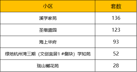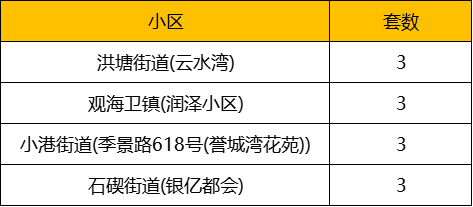 其中洪塘街道(云水湾)、观海卫镇(润泽小区)、小港街道(季景路618号(誉城湾花苑))、石碶街道(银亿都会)成交3套,位列榜首。