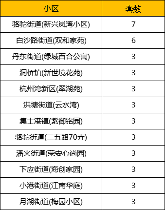 其中骆驼街道(新兴岚湾小区)成交7套,位列榜首。