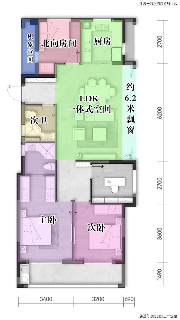 北侧的灵动空间,拓展面积大 ,功能性强,按需规划,承载更多人生阶段的不同生活场景。